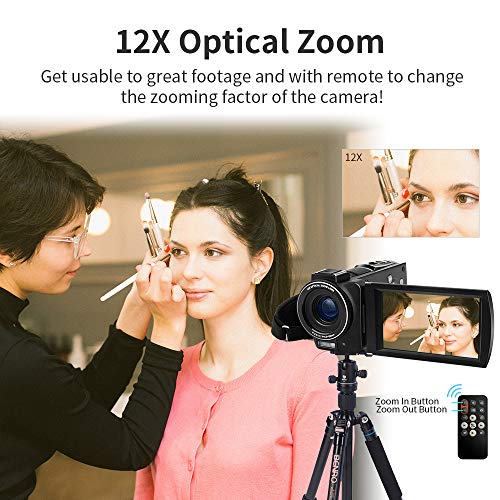 【Optischer Zoom-Camcorder 2880 * 2160】 ✔ – Der Vlogging-Video-Camcorder mit 5MP CMOS-Sensor ist ein großartiges Geschenk für Anfänger und Jugendliche. Nehmen Sie Bilder und Videos mit der Auflösung 28MP und UHD 2880 * 2160 @ 24FPS auf. 12-facher optischer Zoom im Stillstand und Verwendung für großartiges Filmmaterial. 3,5-Zoll-IPS-Touchscreen, Blitzschuh-Design.