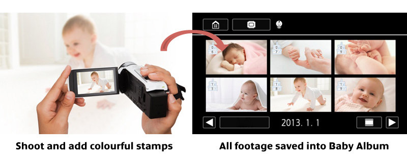 Der neue optimierte Baby Modus ermöglicht Ihnen für bis zu drei Kinder das Festhalten von ersten Schritten und Worten, sowie zahlreichen anderen einzigartigen Momenten Sie können das Geburtsdatum jedes Kindes in der Kamera registrieren und farbige Markierungen und Animationen für Größe und Gewicht hinzufügen. Alle Aufnahmen werden automatisch im Album des entsprechenden Kindes gespeichert.