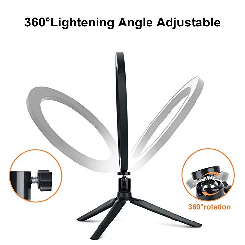 【 ❤ 360° drehbarer LED-Ringlicht: Unsere 25,4 cm Ringleuchte ist die beste Urnengang für Make-up, Living-Streaming, Selfie-Fotos, Filmen, Video-Aufnahmen, Online-Unterricht, Vloggen und mehr. Der 1/4-Steuer-Mini-Kugelkopf-Blitzschuh lässt sich um 360 Maß drehen. Sie können den Winkel anpassen, um das perfekte Licht zu bieten.