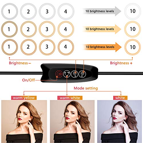 【 ❤ 3 Farb-Modi & 10 Helligkeit】 Diese Ringlichter bieten 3 Farben Beleuchtungsmodus (weiß, warmweiß, nautisch). Jeder Beleuchtungsmodus hat 10 einstellbare Helligkeitsstufen zur Auswahl, die alle Ihre Bedürfnisse unter verschiedenen Gelegenheiten zu Ende führen und jedes Aufnahme / Video professioneller macht.