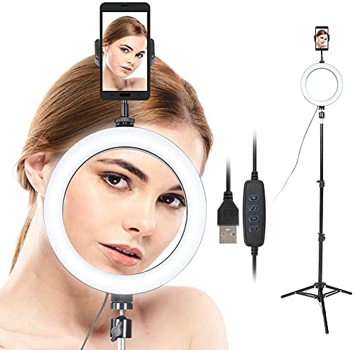 【Multifunktionale Verwendung】 Dieses 3 einstellbare, dimmbare Farbtisch-Make-up-Ringlampenlicht kann häufig für die Bild von Rundfunk- und Online-Shopping-Sendungen für YouTube-Sendungen und zum Erstellen oder Erstellen von Vlog im Home Office oder auf der Straße verwendet werden