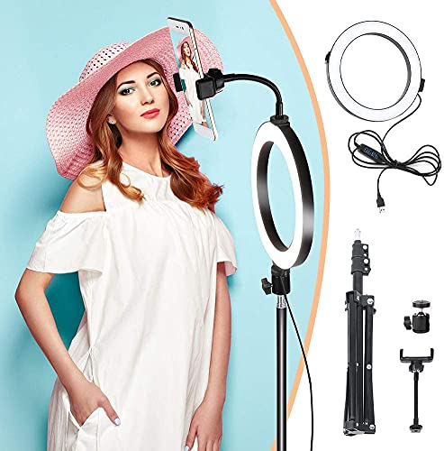 【6 Preis LED Ringlicht】60 Segment LED-Lampenperlen, 6 Preis Ringleuchte (Außendurchmesser – 6 Preis/22cm, Innendurchmesser – 5 Preis/20cm), mit flexiblem Weichschlauch-Telefonhalter und 360° frei drehbarem Kugelkopf, wählen Sie die beste Position Stellen Sie bei Bedarf zusätzliches Licht für das Schminken, Absorbieren von Fotos, Erstellen von Videos und Live Streaming usw