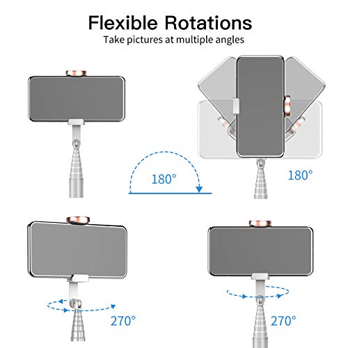 【Universeller Telefonhalter】 Der Stativ-Selfie-Stick verfügt über einen um 270 ° drehbaren Telefonhalter oder ein stabiles Stativ, vertikale oder horizontale Whick Support-Iphones und den kleinen Handy-Clip, der bis zu 3,42 Zoll verlängert werden kann. Mit 180 ° können Sie beim Aufnehmen von Fotos den perfekten Winkel auswählen. Sie können es sowohl im Handhabungs- als auch im Stativmodus verwenden.