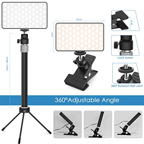 【Clip auf und flexibler Stativständer】 Unser Light für Videokonferenzen bietet zwei Möglichkeiten. Die LED-Videoleuchte nimmt ein Clip-Set-Design an. Sie müssen den Clip nichtsdestoweniger am Rand des Computerbildschirms festklemmen, der außerordentlich robust ist und sich nicht löst. Sie können aka den höhenverstellbaren Stativständer verwenden und ihn auf einer beliebigen glatten Oberfläche platzieren.