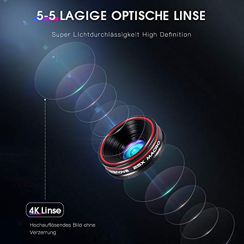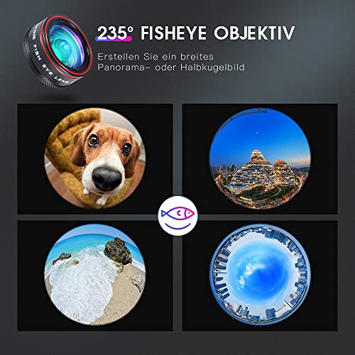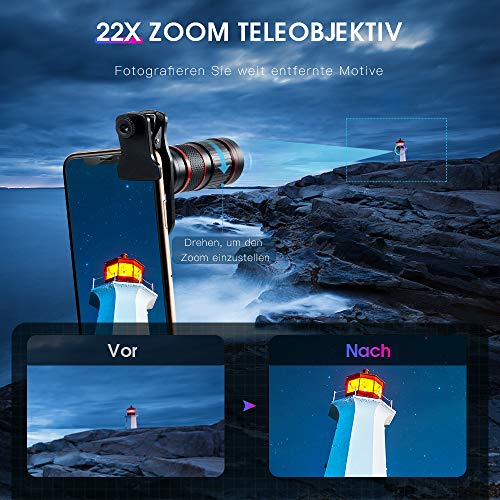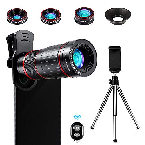 Crenova Handy Objektiv Kamera Linse Kit 22x Zoom Teleobjektiv, 235° Fischaugen objektiv, 25 Makro Objektiv und 0,62…