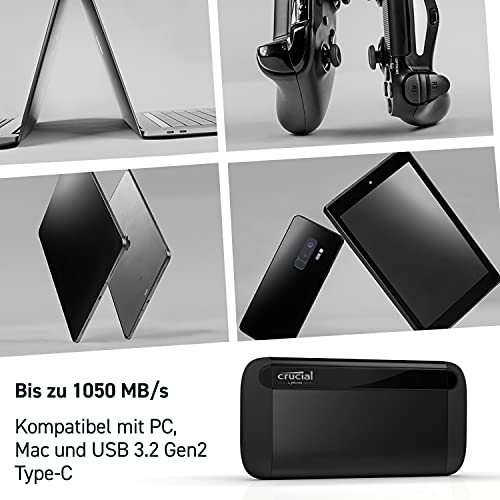 Crucial X8 1TB Portable SSD – Bis zu 1050MB/s – PC und Mac – USB 3.2 Externes Solid State Drive – CT1000X8SSD9