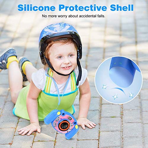 ★ Silikon und stoßfestes Material: Verwenden Sie das umweltfreundliche, ungiftige Material Soft Silicone, eine stoßfeste Schutzhülle, die robust und leistungsfähig für Kinder ist und eine komfortable Möglichkeit bietet, mit der Kinderkamera Fotos oder Videos aufzunehmen.