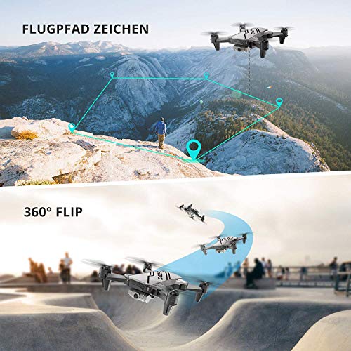 Flugbahn und 3D Flip: Wenn Sie einen Flugkurs auf Ihrem Smartphone zeichnen,wird die Drohne dieser Route folgen.Das macht im Flug unbegrenzt Spaß.Die Drohne kann vulgo über der Fernbedienung um 360 Nuance gedreht werden, und Sie können damit Stunts abarbeiten.