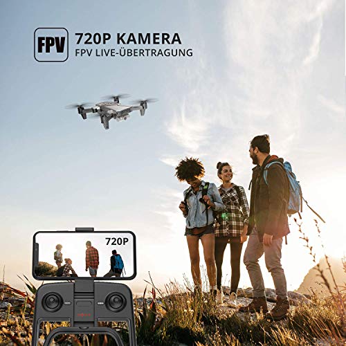 HD Kamera and Übertragung:Ausgestattet mit 720P HD WiFi Kamera für bessere Luftbilder und Videos; Mit der FPV-Bildübertragung können Sie den Himmel und die Welt von einem Live-Video-Feed über die Smartphone/App sehen.