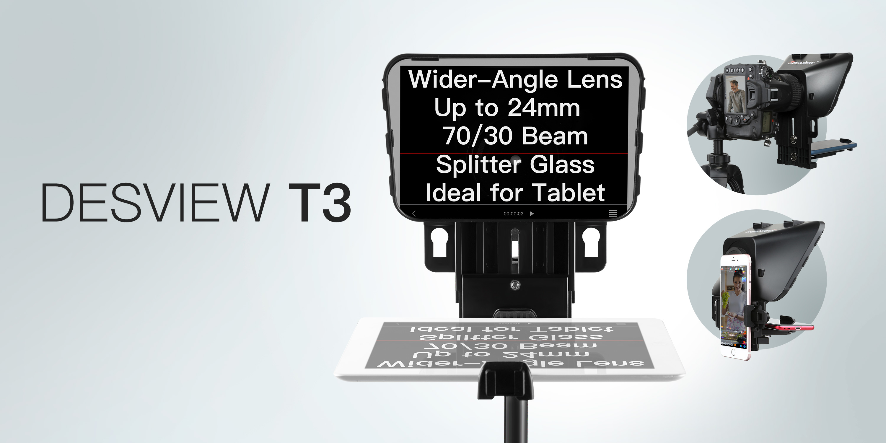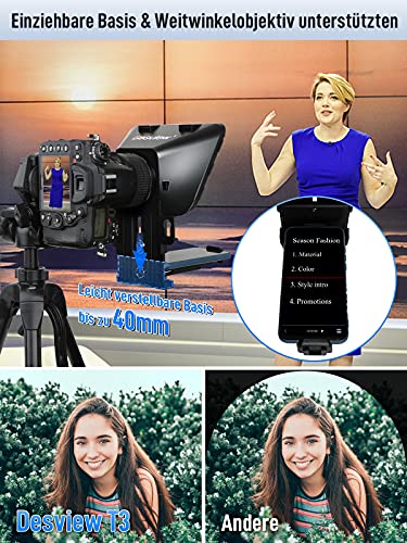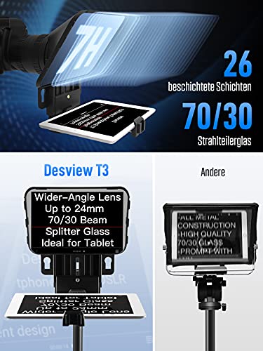 Teleprompter, Desview T3 Prompter für iPhone iPad 11 Zoll, mit Fernbedienung Weitwinkelobjektiv Android iOS Handy Canon…
