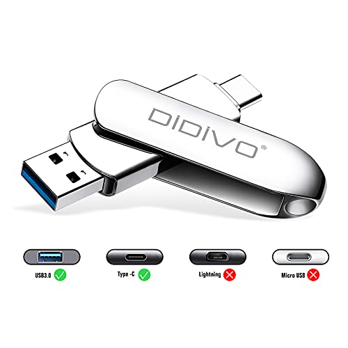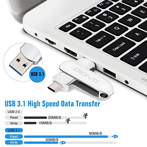 DIDIVO USB C Stick 256GB USB C Flash Laufwerk 2 in 1 USB 3.0 Typ C Speicherstick OTG USB Stick Pen-Laufwerk Externer Speicher für USB-C-Smartphones, Tablets, Neues MacBook, Laptops,PC (256GB, Silber)