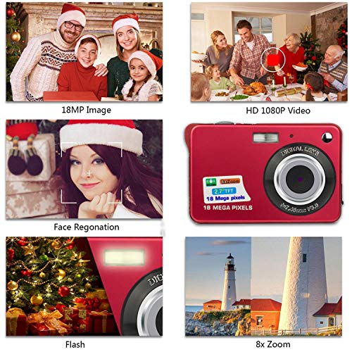 Digitalkamera 1080HD Foto Kamera Digital 2,7 Zoll 18 MP Mini Digital Kamera mit 8X Digitalzoom Fotoapparat Digitalkamera…