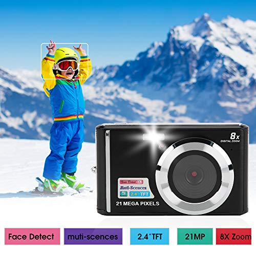 Digitalkamera – Diese Digitalkamera ist mit einer Fotoauflösung von 21 MP ausgestattet. Die Kompaktkamera mit 8-fachem Digitalzoom, mit der Sie weit entfernte Motive näher betrachten und die gewünschten Details einfangen können.