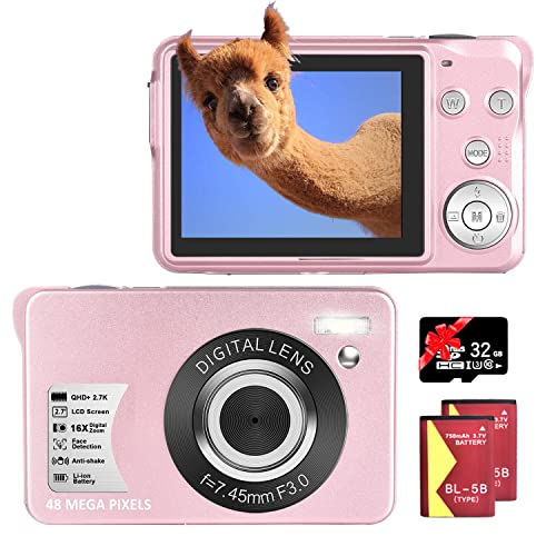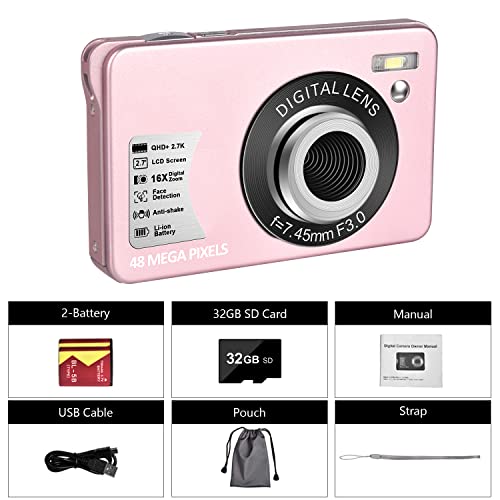 ❥48MP Digitalkamera mit 32GB SD-Karte: Diese 48-Megapixel-Digitalkamera kann Ihnen bei jeder Positiv ein ultrahochauflösendes Umwandlung liefern, damit Sie jeden wunderbaren Moment festhalten können. Mit dem hellen 2,7-Verzinsung-TFT-Bildschirm können Sie Ihre Fotos in großer Klarheit betrachten. Fotoapparat digitalkamera ist mit einer 32GB Speicherkarte ausgestattet. Bitte formatieren Sie die Karte, nachdem Sie die Digitalkamera erhalten haben, und dann können Sie mit dem Abknipsen beginnen.