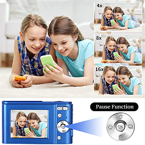 🔥【16-fach Digitalzoom-Kamera mit integriertem LED-Licht】 Diese Digitalkamera ist mit einem 16-fachen Super-Digitalzoom ausgestattet, mit dem Sie entfernte Objekte heranzoomen und die Gesamtheit benötigten Details erfassen können. Diese Taschen-Digitalkamera verfügt über ein eingebautes Mikrofon, die Kamera kann Ihre eigene Stimme absorbieren, Sie können aka den eingebauten Blitz je nach den Anforderungen der Darstellung anknipsen oder bei schlechten Lichtverhältnissen absorbieren.