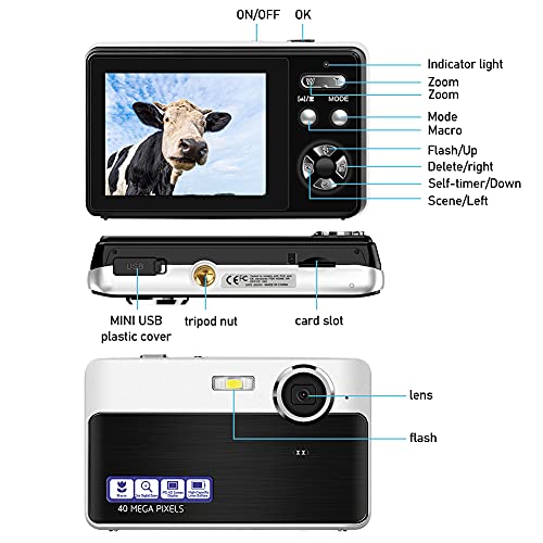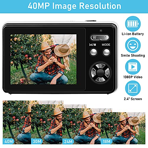【40MP und 1080P HD-Bildqualität】Die Digitalkamera verwendet eine superhohe Bildqualität von 40MP / 1920 * 1080P. Gleichzeitig können Sie auch mehrere Auflösungen des Kamerafotos detachieren: 5M / 8M / 12M / 18M / 24M / 30M / 40M. Mehr freie Wahlmethoden, damit Sie jede Sekunde beim Einsaugen von Videos und Fotos klar genießen können. Die kompaktkamera wird mit einer 32 GB Speicherkarte geliefert, die nach dem Formatieren direkt verwendet werden kann.