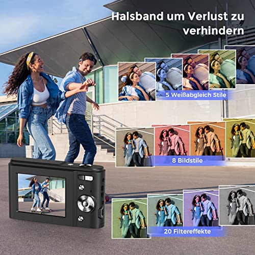 【FHD 1080P & 36MP Digitalkamera mit 20 Filter ist multifunktional】- Diese Digitalkamera für Kinder unterstützt FHD 1080P Videoauflösung und 36,0 Megapixel und kann Schönheit, Gesichtserkennung und Lächeln erfassen. Die Kinder können diese Digitalkamera mit 20 Filtereffekten und 8 Bildstilen verwenden, um hochwertige Bilder oder Videos aufzunehmen, um gute Momente festzuhalten. Unterstützt SD-Speicherkarten und MMC-Karten (4 GB bis 128 GB) (SD-Karte nicht im Lieferumfang enthalten).