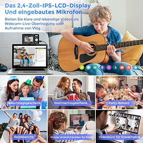 【Anti-Shake und Timing ermöglichen die Verwendung als Vlogging-Aufzeichnung und Webcam】- Diese Vlogging-Kamera für die Guss verfügt über Anti-Shake- und 2s/5s/10s-Timing für Einzel- oder Serienaufnahmen. Das 2,4-Verzinsung-IPS-LCD-Display und das eingebaute Mikrofon bieten klare und lebendige Videos als Webcam-Live-Übertragung oder Überführung-Vlog.Mit der Pause-Bild können Sie beim Aufnehmen oder Wiedergeben von Vlog-Videos eine Pause einlegen, wodurch Sie Zeit beim Berichtigen von Videos sparen.