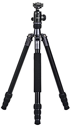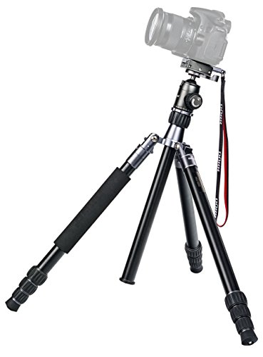 Stufenlos einstellbare Mittelsäule & reversibel für Makroaufnahmen, Profi-Kugelkopf aus hochwertigem Aluminium mit 1/4″ Schnellwechselplatte, Stativanschluss 3/8″