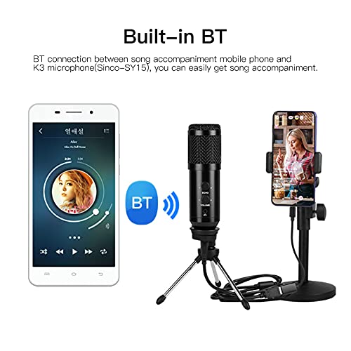 Eingebaute BT, BT-Substantiierung zwischen Liedbegleitungs-Handy und K3-Mikrofon, Sie können jedweder einfach Liedbegleitung erhalten. Mit der Kopfhörerbuchse können Sie den Ohrhörer in die Kopfhörerbuchse einstecken, um Ihre Stimme in Echtzeit zu am Ball bleiben.