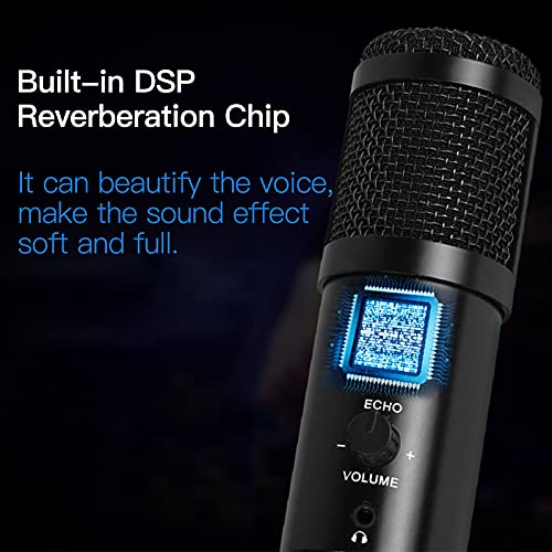 Klang und Nachhall können per Drehknopf eingestellt werden. Kommt mit faltbarem Stativ, einfache Annullierung des Mikrofonwinkels, fester und stabiler Gebrauch.