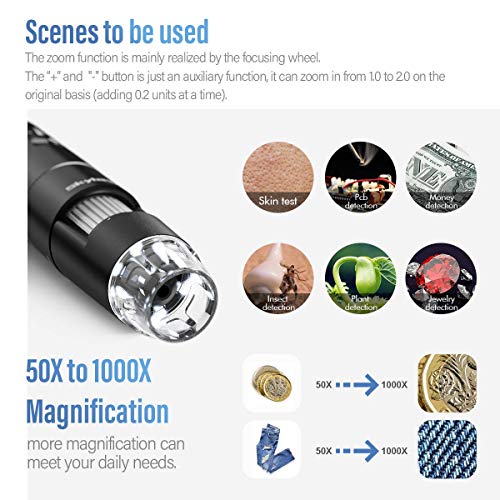 ☁ 【50X-1000X Drahtloses digitales Microskop】Drahtloses digitales Handmikroskop kann mit Ihrem Mobiltelefon des Android- oder iOS-Systems verbinden und ist auch kompatibel mit Windows- oder Mac-Computern. Dieses innovative Mikroskop kann die Materialien in Echtzeit drahtlos bis zu einer Abtransport von 33FT übertragen, wobei es das Betrachtungsobjekt bei einer Überführung von 50x bis 1000x vergrößert. Bitte koordinieren Sie das einzige authentische Geschäft „Cewarrick-EU“.