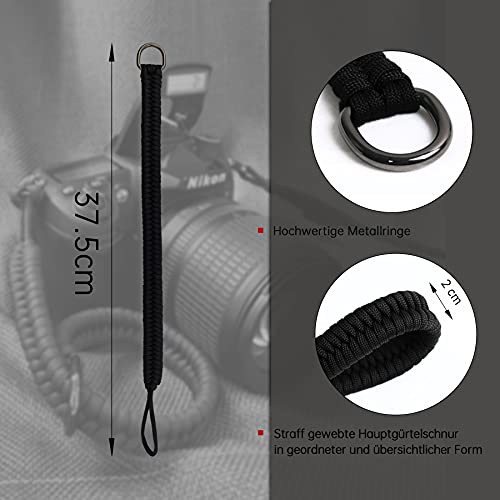 📸【Zuverlässiges Material Paracord 550】📹Die Handschlaufe der Kamera ist mit Paracord 550 gewebt, hat die Eigenschaften der hohen Zähigkeit und Verschleißfestigkeit, ein einzelnes Seil kann 130 Kg befestigen, hohe Festigkeit, rutschfest, langlebig, bequem, kann wie verduften Seil in einem Notfall verwendet werden.