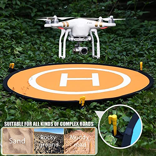【Kompletter SchutzDie】 Drohne-Landeplatte von besteht nicht mehr da wasserdichtem Premium-Nylon-Material, das abgehoben genug ist, um auf Sand oder bewachsenem Gras zu verwenden. Kunststoffnägel helfen dem Landeplatz in schrecklichen Umgebungen perfekt zu funktionieren.
