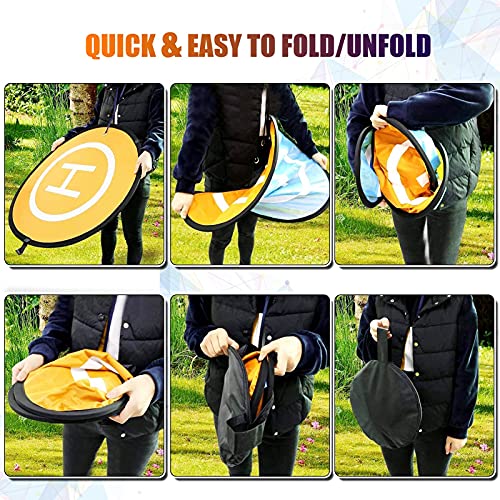 【Tragbares Easy-Fold-Landeplatz für Drohnen】 Die ungefaltete Größe beträgt 29.5 „(75 cm) und die gefaltete Größe weniger als 11“ (28 cm). Unser Landeplatz ist von Natur aus leicht und daher tragbar und bequem zu transportieren, wenn Sie Drohnen im Freien fliegen.