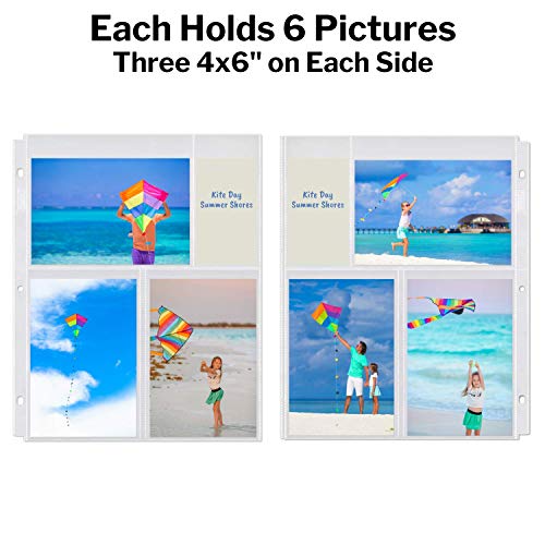 10,2 x 15,2 cm Fotoalbum-Einsätze: Fotoalbum-Seiten für 3-Ringbücher. Jede 3-Pocket-Bildschutzhülle bietet Platz für 6 Fotos (3 vorne, 3 achteraus), gemischtes Layout: 1 Querformat (horizontal), 2 Hochformat (vertikal)