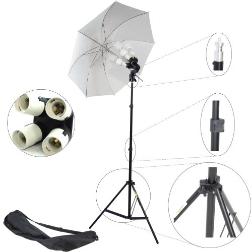 DynaSun JDD8KIT 4in1 E27 Studio Set Abguss Video Licht Lampenstativ Reflexschirmhalter mit 4in1 Lampenfassung Lampenhalterung, Schirm Reflexschirm für Blitze Lampen