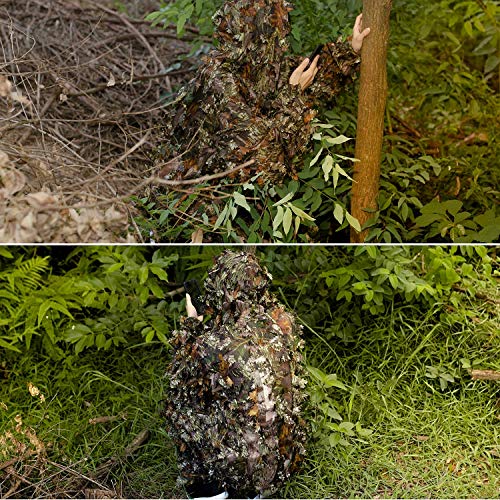 ღ BREATHABLE & COMFORTABLE – The ghillie suit is made from polyester,it’s quite breathable and comfortable.Feels very wollig,and wears super leicht(only 0.95 lb).This feels smooth to the skin so you can wear a T-shirt underneath.