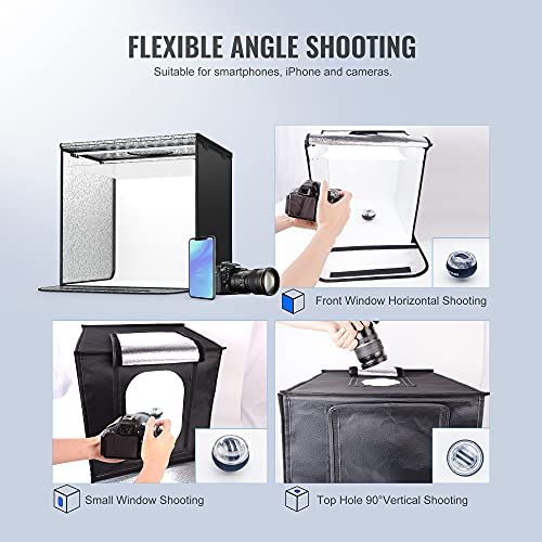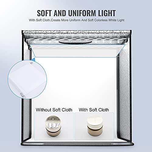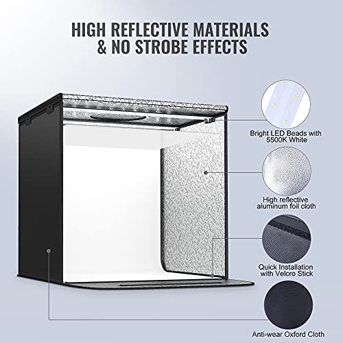 【HELLE 48 LED-CHIPS】EASY EAGLE Mini Fotostudio Zelt ist mit 48 LED-Chips bei einer Farbtemperatur von 5500 K ausgestattet, die das perfekte Licht für die Erzeugung realistischer und lebendiger Fotos ohne Blitz bieten. Machen Sie Ihre Vergrößerung einfacher und professioneller, selbst wenn Sie mit dem iPhone Abknipsen. Bewegliche LED-Lichtpaneele können die Erstellung von Lichtern an mehreren Orten unterstützen.