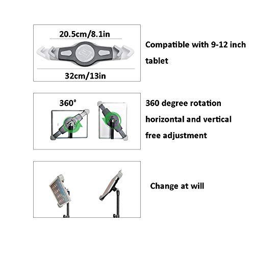 Eisen Ipad Bett Halterung,Höhenverstellbar 55-145cm/21.6-57.1in,Schwarz Stativ Ipad Pro für Alle Besten Tablet-Pcs…