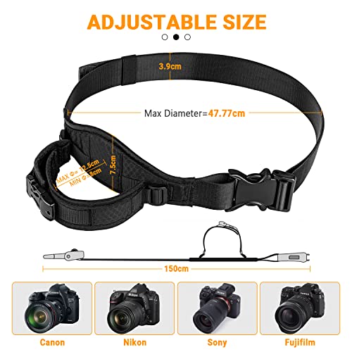 📷 Einstellbarer Sicherheitsgurt: Dekompressionskamera-Taillengürtel mit einer Gesamtlänge 150 cm, passt fast Menschen. Ein minimaler Kamerablinerdurchmesser ca. 8 cm und ein maximaler Kamerablinerdurchmesser von etwa 12 cm, eignet sich für die meisten schwersten Kameramodelle, wie DSLR, SLR, Nikon, Canon, Sony, Panasonic, Olympus, Fujifilm, Leica usw., Material ist leistungsfähig und dauerhaft