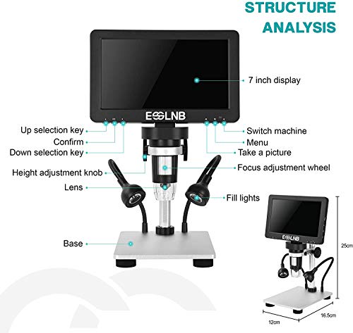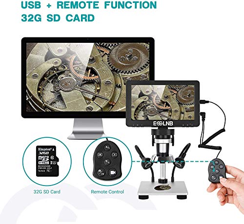 7 Zoll 1080P HD Microscope bietet klare und scharfe Bilder. Wiedergabe, Foto- und Videoaufnahmefunktion. Die aufgenommenen Dateien können auf der MicroSD Karte (32GB TF Karte enthalten) abgespeichert werden.