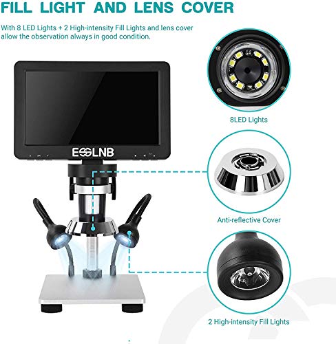 ESSLNB 7”LCD Digital Mikroskop 1200X 1080P Video-Mikroskop mit 32GB Karte USB-Mikroskop Kamera Fernbedienung 8 LED Licht…