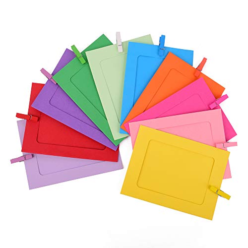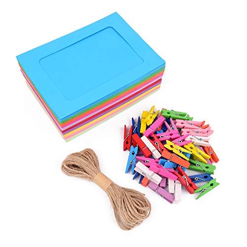 50 Fotorahmen nicht mehr da hochwertigem Tonpapier; 10 kräftige Farben: voll, grün, pfirsichfarben, pink, flieder, rot, lila, gelb, rosa, pastell grün; Weite der Fotorahmen: 15,5 x 11,5 cm, Sichtfenster: 8 x 11,3 cm, 50 bunte Mini-Holzwäscheklammern + Schnur; Die Bildhalter herrschen mit Hilfe von tollen Bildern, Postkarten oder Memos bestückt werden. Zudem herrschen die Fotorahmen angepasst beschrieben oder mit Hilfe von Glitzersteinen, Aufklebern auch Glitzer verziert werden.