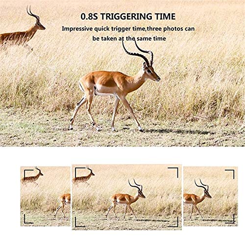 Super schnelle Triggergeschwindigkeit: mit 120 ° Superweiter Linsenwinkel, 110 ° PIR-Erkennungswinkel und 0,8 Sekunden beeindruckender Schnellauslösungsgeschwindigkeit, Sie sind garantiert, dass Sie absolut nie atemberaubende Momente mit Multi-Shot-Merkmalen verpassen, die bis zu 3 Fotos und 10er dauern könnenVideo Alle Trigger, Alle erkannte Bewegung wird schnell erfasst und in Echtzeit dokumentiert.