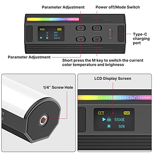 【RGB Colorful Light Mode】 360 ° einstellbarer RGB-Farbton und 0 % – 100 % einstellbare Helligkeit bietet Ihnen verschiedene farbenfrohe Lichteffekte. Lassen Sie sich schnell von neuen Kreationen inspirieren, um lebendigere Fotos zu hen und vollere Videos aufzunehmen.