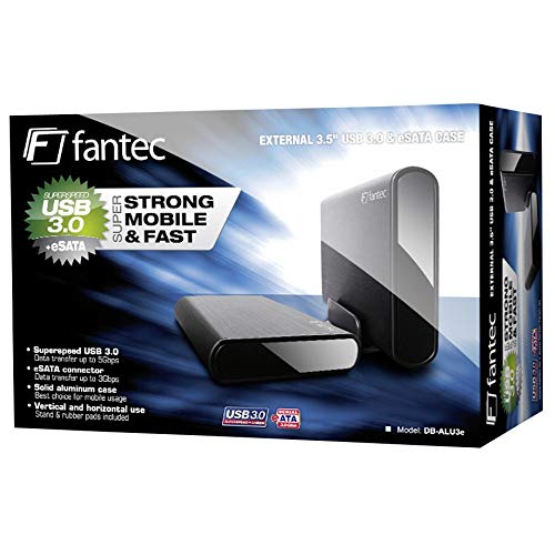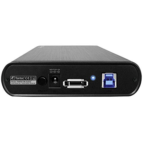 FANTEC DB-ALU3e schwarz USB 3.0 eSATA 8,89cm 3,5Zoll Externes SATA Gehaeuse Netzschalter Status LED Anzeige Aluminuim gebuerstet