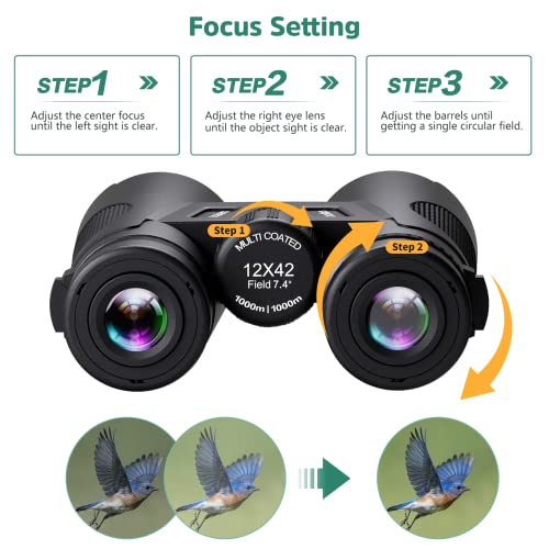 🐾【 12×42 Professionelles HD-Fernglas】Die 12-fache Hochleistungsvergrößerung und die 42 mm große Objektivlinse sorgen für erstklassige Klarheit und Helligkeit. Das superweite Sichtfeld von 100 / 1000m ermöglicht es Ihnen, einfach mehr Details zu erhalten und bietet die bequemste und klarste Sicht.