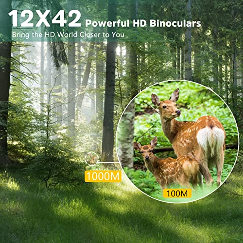 🐾【 12×42 Professionelles HD-Fernglas】Die 12-fache Hochleistungsvergrößerung und die 42 mm große Objektivlinse sehen nach erstklassige Klarheit und Helligkeit. Das superweite Sichtfeld von 100 / 1000m ermöglicht es Ihnen, einfach mehr Details zu erhalten und bietet die bequemste und klarste Sicht.
