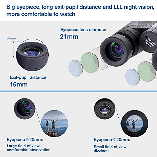 ✔【Große Okulare, großer Abstand der Austrittspupille, kein Schwindelgefühl】— Der Durchmesser des Okularobjektivs des Focevi Fernglases beträgt 21 mm, mehr als 20 mm, Sie haben ein großes Sichtfeld und werden sich nicht schwindelig fühlen. Der Abstand der Austrittspupille ist 16 mm, mehr als 15 mm, man kann damit bequem beobachten, und es hat eine drehbare Augenmaske, sehr einfach zu benutzen, ob Sie eine Brille tragen oder nicht.