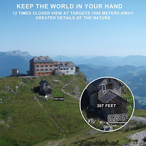 [ Professionelles leistungsstarkes Fernglas in voller Größe ] Mit 12-facher Photo und 42 mm großem Objektiv, ist das Sichtfeld breiter, 100 m großes Sichtfeld für sich schnell bewegende Motive. Geeignet zum Beobachten von Vögeln, Jagd, Landschaft und Konzerten.
