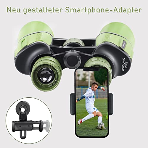 Fernglas für Erwachsene, 20×50 HD Fernglas, Vergrößerung Binoculars mit Smartphone-Adapter zum Wandern, Fotografieren…