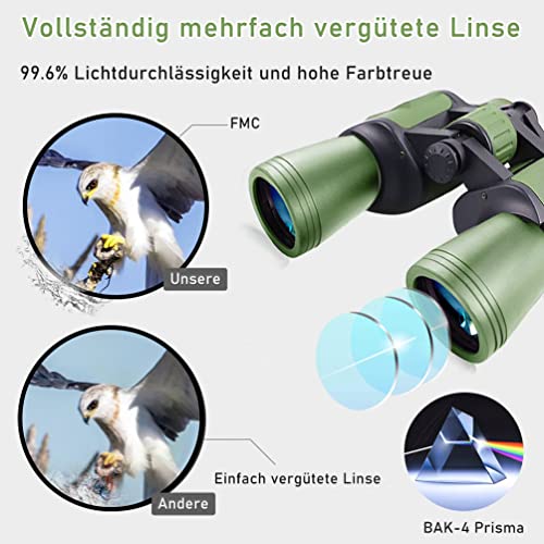 20×50 HD-Fernglas – BAK4-Prisma mit mehrschichtiger FMC-Beschichtung, klares Darstellung, helle Farbe, hohe Helligkeit und Kontrast, passend zum Wandern, Vogelbeobachten, Jagen, Beobachten von Sportveranstaltungen.