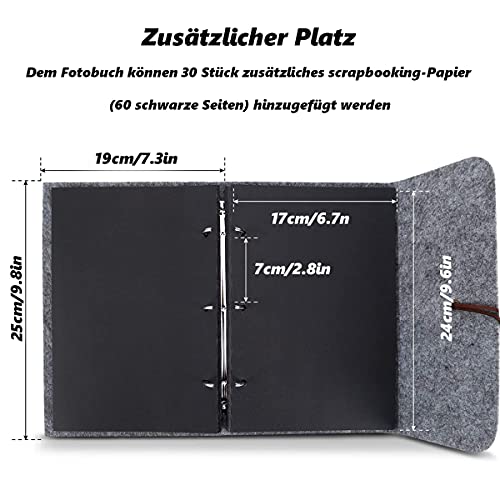 【SchöNes Design Und Hochwertige Materialien】: Hergestellt aus hochwertigemFühlte. das dicke schwarze Papier dringt nicht in die Abseite des Papiers ein und der haltbare Edelstahlring sorgt dafür, dass das Album lange Zeit wiederverwendet werden kann.
