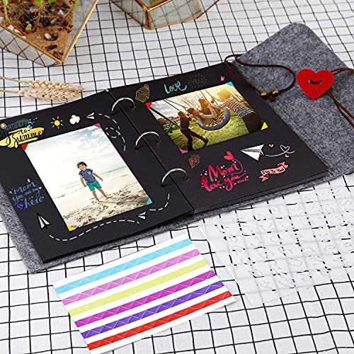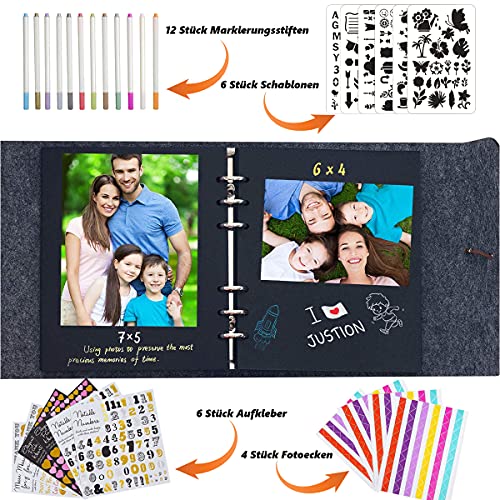 【Set Enthält】: 1x Hausgemachtes Filzalbum (30 Blatt / 60 Seiten), 12x metallic marker stifte (12 Farben), 6 x verschiedenen Painting Vorlagen, 6x Aufkleber, 4x Fotoecken, das ringbuch design lässt sich leicht öffnen und schlussfolgern, sodass Sie nach Bedarf schwarze Seiten Hinzukommen oder Abdrehen können.