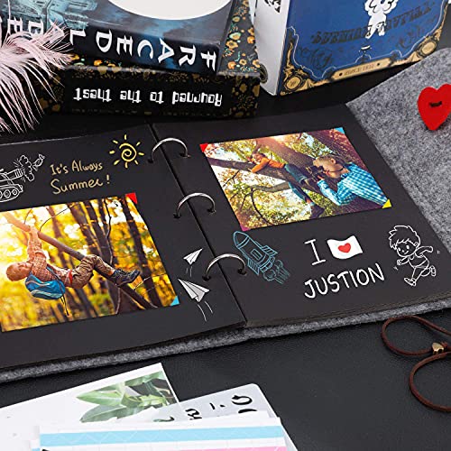 【 Kann HinzugefüGt Werden Loseblatt-Design】: Die schwarzen Seiten des Albums sind mit hochwertigen Edelstahlringen untergeordnet. Diese Ringe lassen sich leicht öffnen und schlussfolgern, sodass Sie nach Bedarf weitere schwarze scrapbook Hinzukommen können.Die Seildekoration verleiht dem Album Schönheit. Das Merkmal von schwarzem Papier ist es, die Farbe und Schönheit des Fotos hervorzuheben.